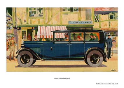 Taken from an original banner for an Austin saleroom painted and designed by my Grandfather. The picture ahows off this fine motorcar of the 1930's and has a lovely art deco feel.