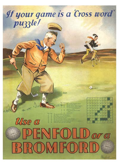 The bad-tempered golfer is having a crossword with his opponent and a crossword is included in the painting.